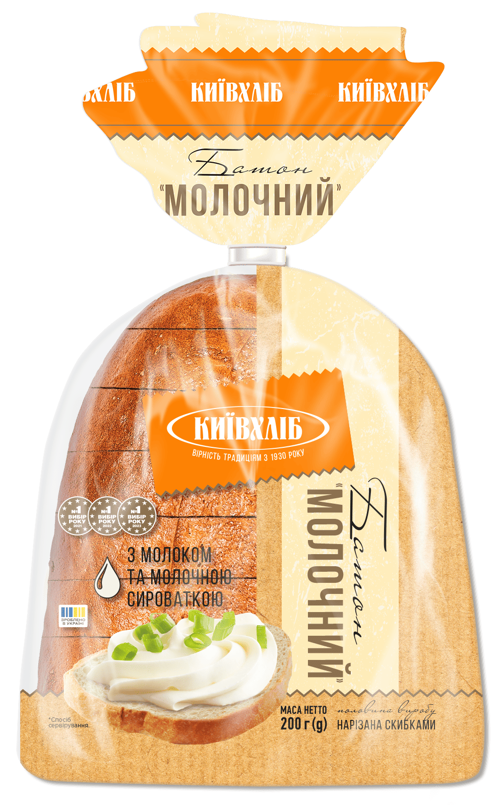 Батон з ніжним молочним смаком з додаванням сухого молока та молочної сироватки.