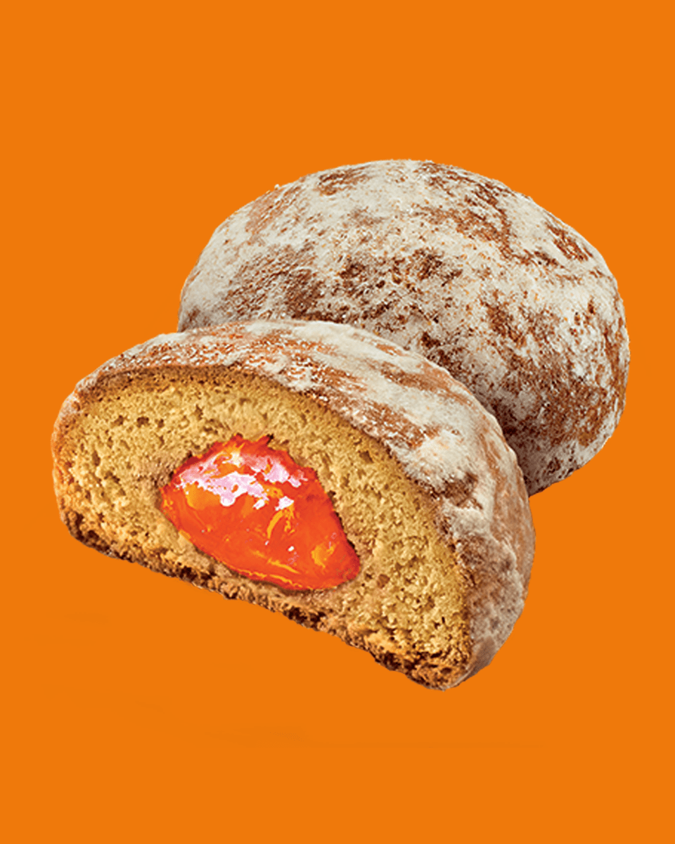 М'які та смачні пряники, в цукровій глазурі. Натуральний склад, без пальмової олії. З абрикосовою начинкою.