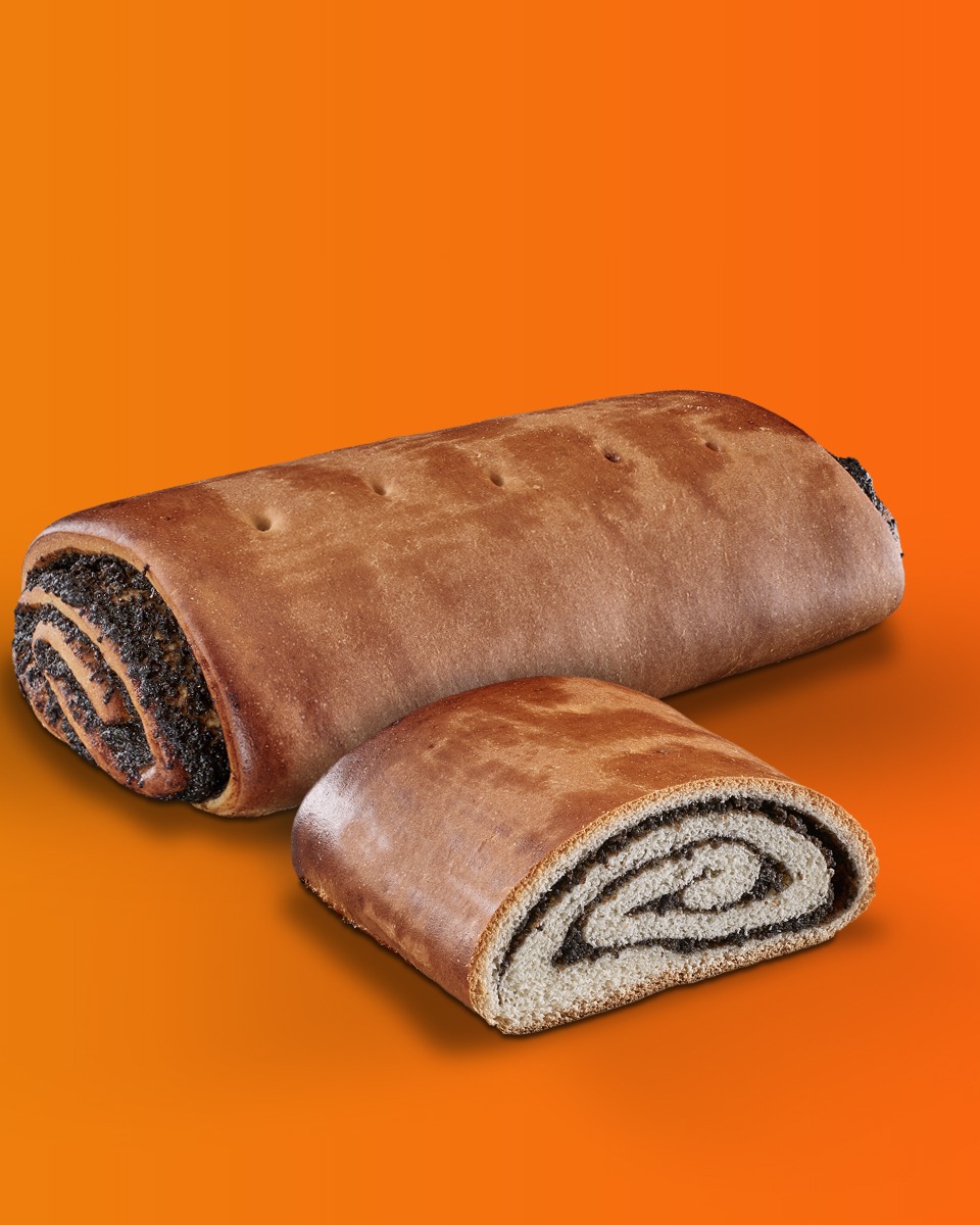 Апетитний рулет з великою кількістю макової начинки