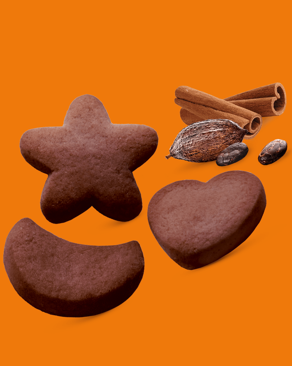 Борошно пшеничне вищого сорту, пудра цукрова, маргарин столовий (олії пальмова та соняшникова рафіновані дезодоровані, вода питна, сіль кухонна, емульгатори: моно- та дигліцериди жирних кислот, ефіри полігліцеридів і жирних кислот, лецитин соєвий; консервант сорбінова кислота, ароматизатор «Масло», регулятор кислотності молочна кислота, барвник бета-каротин), сироп інвертний (цукор, вода питна, регулятори кислотності: карбонати натрію, лимонна кислота), какао-порошок зі зниженим вмістом жиру 4,9%, розпушувачі: карбонати амонію, карбонати натрію; порошок яєчний, паленка, кориця мелена 0,5%, сіль кухонна, кардамон мелений 0,2%, емульгатор лецитин соєвий.
