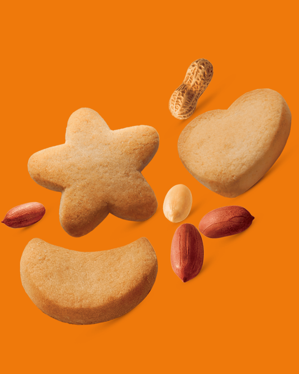 Маленьке цукрове печиво у формі зірочки, місяця і серця, виготовлене за класичною рецептурою, з додаванням подрібнених ядер бобів арахісу (6,3%), з ароматом ванілі. Ніжне, ароматне та хрумке печиво до чаю та кави!