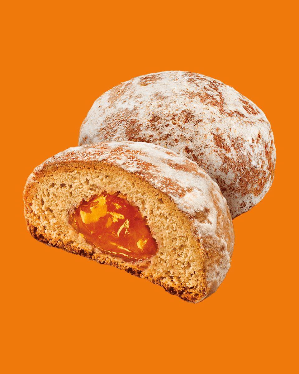 М'які та смачні пряники, в цукровій глазурі. Натуральний склад, без пальмової олії. З апельсиновою начинкою.