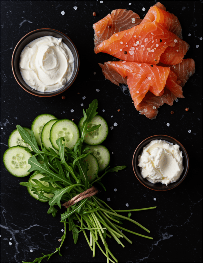 Приготуйте вишуканий сендвіч із слабосоленим лососем, крем-сиром, руколою та огірком на основі сендвічного хліба «Королівський» мультизлаковий лінійки British Sandwich