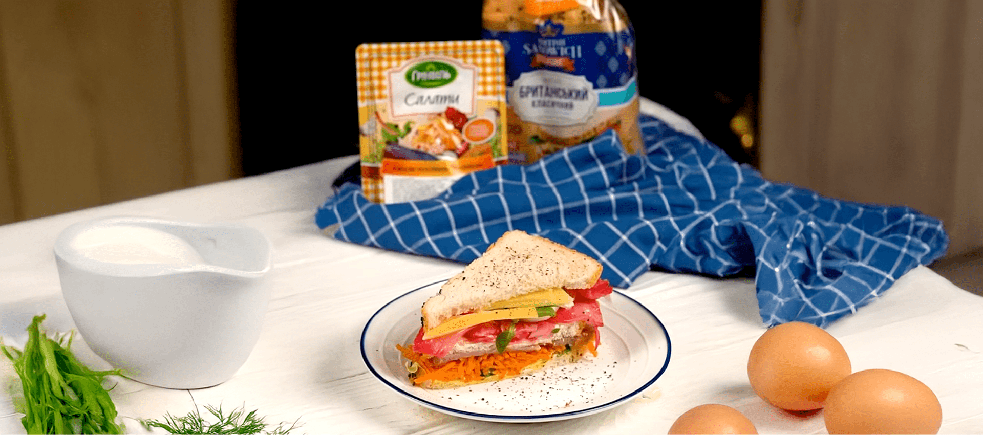 Ніжний «Британський» класичний сендвічний хліб з лінійки «British Sandwich» – ідеальна основа, а морква та капуста пелюстками по-корейськи від «Грінвіль», додають пікантного та соковитого смаку! 🔥🌶